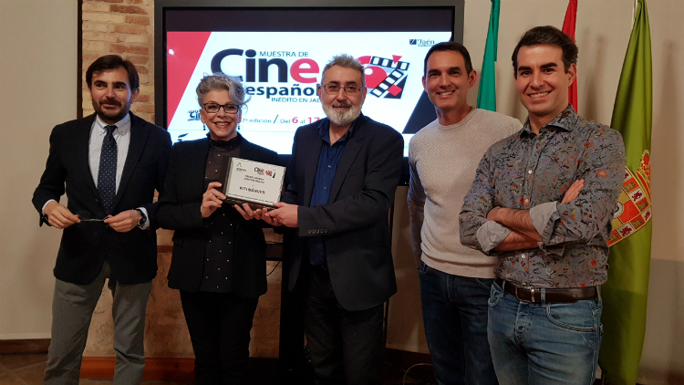 El diputado de Cultura y Deportes de Jaén, Juan Ángel Pérez, la actriz Kiti Mánver, el presidente de Asecan Javier Paisano, el director Juan Carlos Rubio y el actor Daniel Muriel