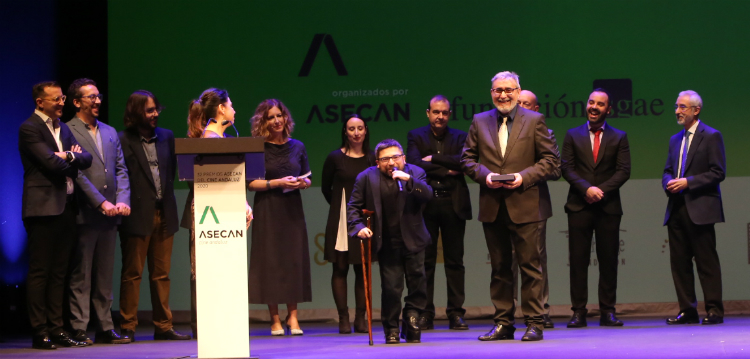 Javier Paisano y Juan Antonio Bermúdez, anteriores presidente y vicepresidente respectivamente de Asecan, recibieron en el inicio de la 32º Gala de entrega de Premios del Cine Andaluz, la Medalla de Honor de Asecan 2020.